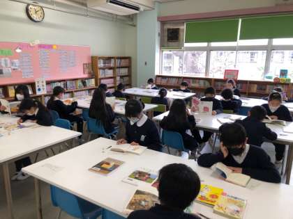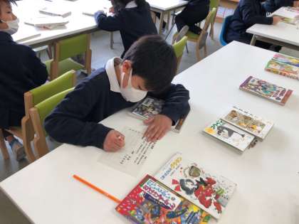 4年生の図書の時間に、学校図書館補助員さんが「おためし読書」という取組をしてくださいました。