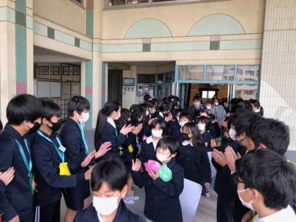 退場後は、達成感でいっぱいのいい表情。そして誰からともなく、退場してきた在校生たちを拍手で見送っていました。本当に優しい先輩達ですね。