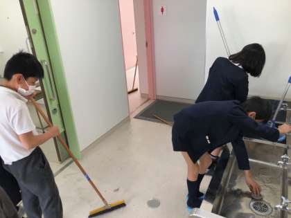 ピカピカの1年生をお祝いするために、学校内をピカピカにしています。さすが、最高学年ですね。