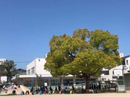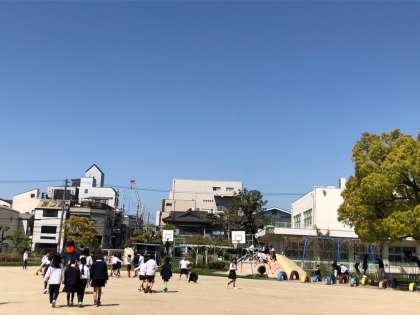 やすみ時間。さっそく運動場で元気に遊んでいます。
