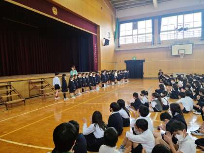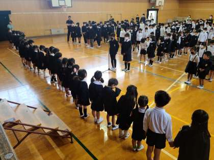 1年生は緊張しているようでしたが、長いあいさつもしっかり言えてました。6年生の代表もお迎えの言葉を上手に言えました。さすが6年生です。みなさん、1年生にやさしくいろいろ教えてくださいね。