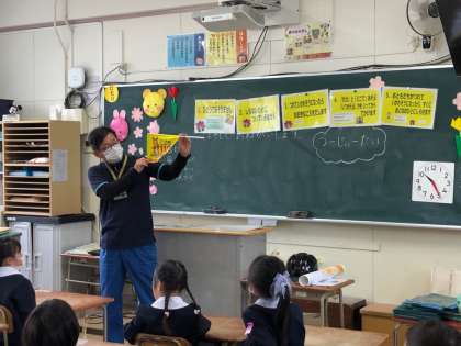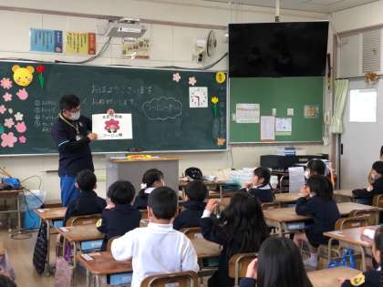大正区役所のツージィ隊の方が、1年生に、安全に過ごすための大切なお話しをしに来てくださいました。