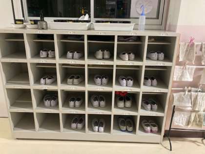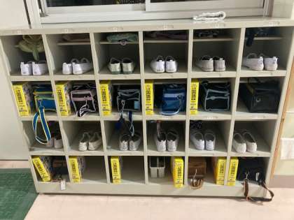 今日の全校朝会では、校長先生より靴のしまい方についてお話がありました。
