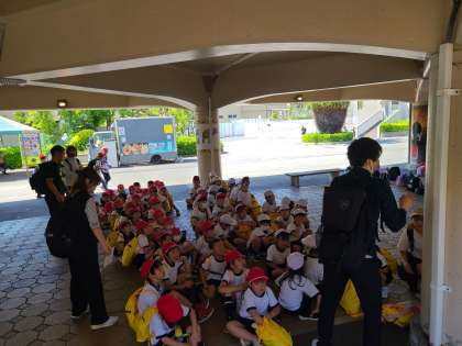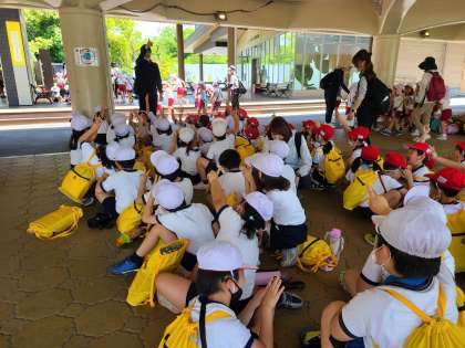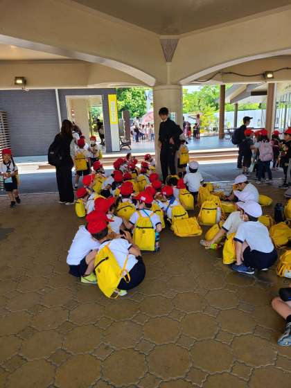他の学校もたくさん来ていて、混雑しています。トイレに行って写真をとりました。今から見学です。