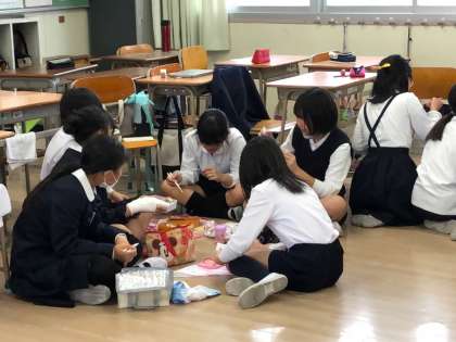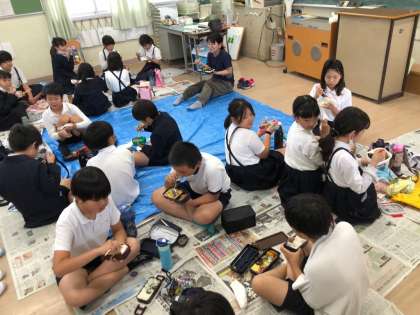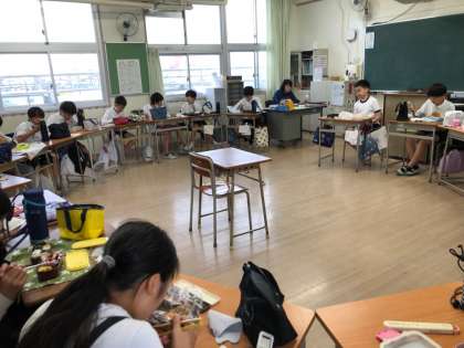 雨天のため5.6年生の遠足は延期となりました。せめてお弁当タイムは遠足気分を味わわせてあげたいと、各学級円になったりグループで食べたりしています。美味しそうです!