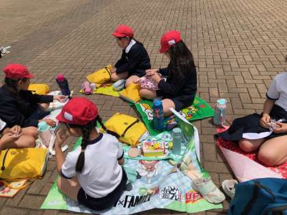 お弁当タイムです。風が強いです。飛ばされないように気をつけて。