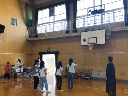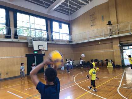 バレーボール、野球、キックベース、バスケットボールのスポーツ体験がありました。