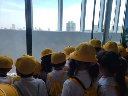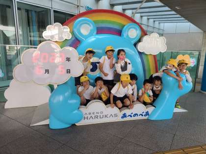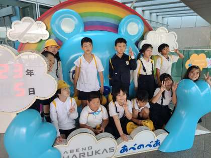 「あべのべあ」といっしょに記念撮影。楽しく見学することができました。