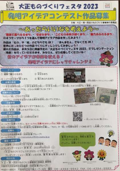大正ものづくりフェスタに向け、発明アイディアコンテストの作品が募集されています。