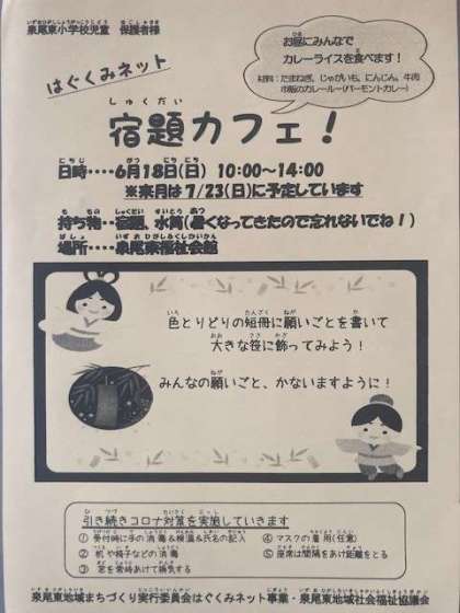 はぐくみネット事業 本日開催「宿題カフェ!」
