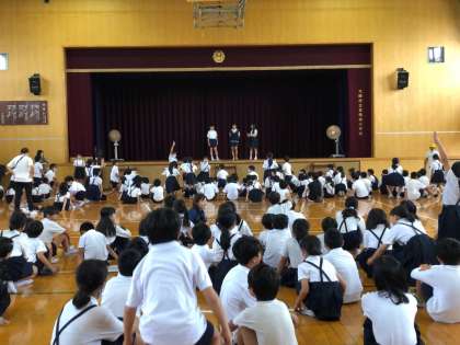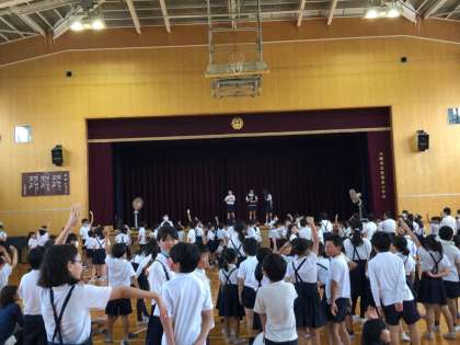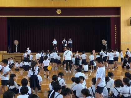 1学期最後の児童集会は、集会委員会の企画によるイントロクイズでした。