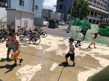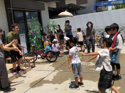 そしてその後は、水風船で盛り上がっています。暑さもなんのその、大歓声が響いています。