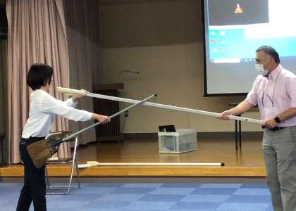 もしもの時に子どもたちの命を守るため(もちろん教職員の命も)、警察に引き継ぐまでの時間をいかに稼ぐか、DVDや実技を通して学びました。