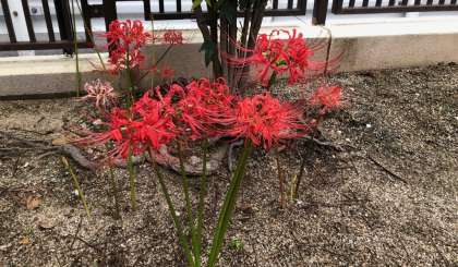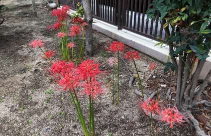 お彼岸の時期はあまりにも暑すぎたのでしょう。お彼岸を過ぎて、彼岸花が咲き始めました。学習園のすみに、まだまだ茎が伸びてきています。