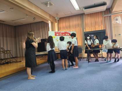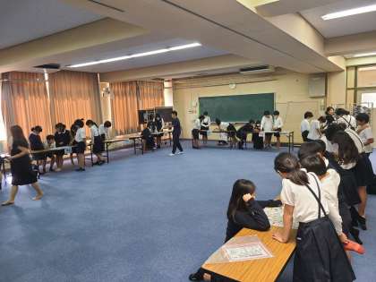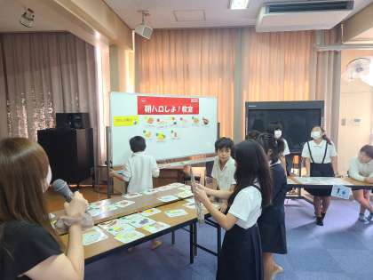 相談した後、メニューの発表をしました。グループによって違いがありおもしろかったです。栄養バランスも考えられていました。