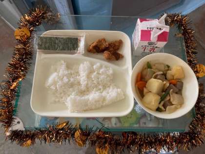本日の献立 みそカツ、じゃがいもと野菜の煮もの、焼きのり、ごはん、牛乳