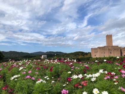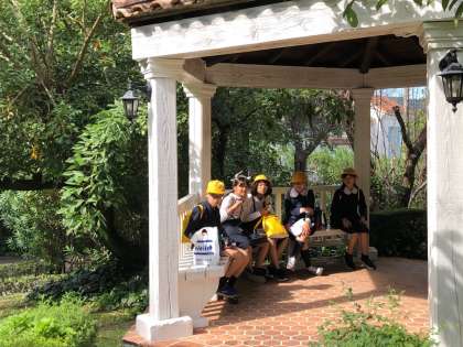 スペイン村は自然がいっぱい、お花も美しく咲いています。ほっこり休憩している子たちもいました。