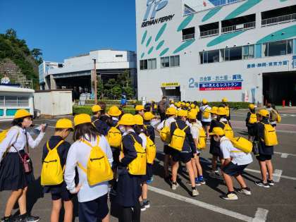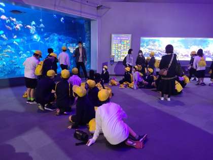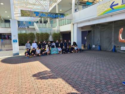 鳥羽水族館に着きました。入館前に記念写真をとりました!
