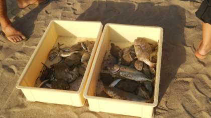 地引網で獲れました。海の幸をこんなに授かりました!