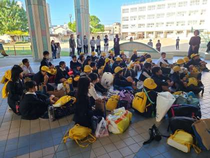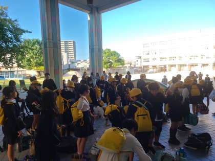 学校に到着し、帰校式をしました。保護者のみなさま、お迎えありがとうございます。一泊二日の修学旅行、一人ひとりにそれぞれの思い出ができたことでしょう。思い出話をしながらも、今日はゆっくりと休んでください。