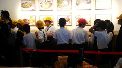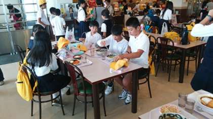 鳥羽水族館でもグループ行動です。午前11時25分、グループによっては早めの昼食をとっているグループもあります。それぞれグループごとに話し合って、効率の良い回り方を考えながら見学しています。昼食場所の混み具合も考慮に入れているグループもあります。