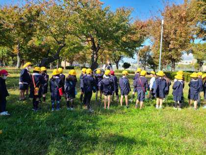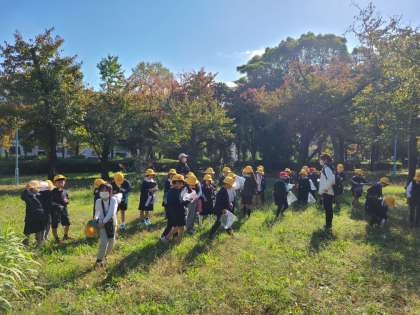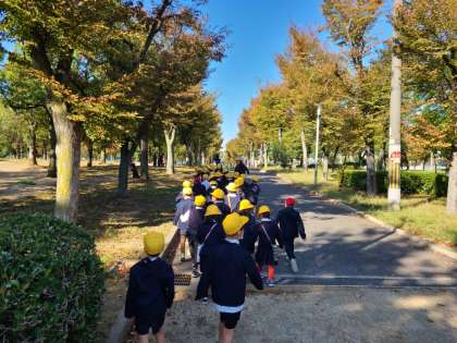 1年生が泉尾公園にどんぐりひろいに行きました。公園まで歩いてきました。みんな車に気をつけて上手に歩けていました!