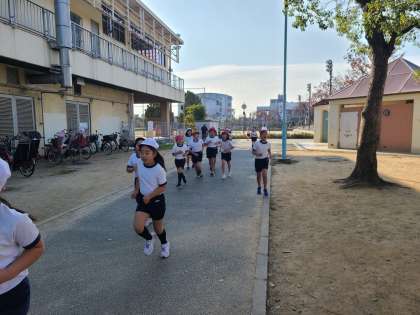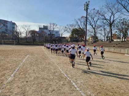 3年4年です。太陽も顔をだし、全員最後まで走りきりました!