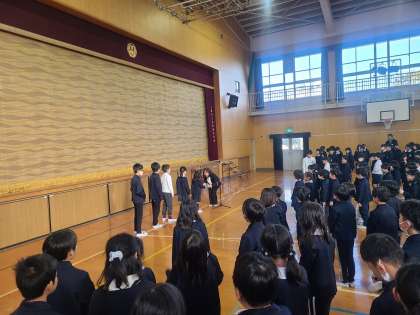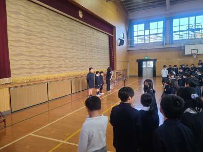 今日から3学期が始まります。講堂に集まって始業式を行いました。校歌を歌い、校長先生から3人の転入生の紹介がありました。その後、読書感想文の表彰がありました。みんなで拍手でお祝いしました。冬休み、元気に過ごせていたようで安心しました。3学期は3ヶ月間、あっという間です。1日1日を大切にしてほしいと思います。