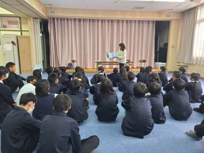 大正図書館のご紹介で、本の読み聞かせボランティアの方々が来られました。今日は6年生のお話会で読み聞かせをしてくださいました。みんな静かに真剣にお話をきいていました。絵本のお話はなんだか心がなごみます。6年生の子どもたちもなごやかな表情でした。