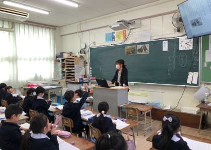 1年生は国語科の「子どもをまもるどうぶつたち」。入学して一年足らずで、読む力も書く力も伸びました!