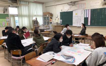 放課後には、全員で今日の授業の成果と課題について考えました。スクールアドバイザーの先生からは、具体的な指導法の工夫について、明日から早速取り入れたくなる助言をいただきましたました。