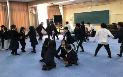 もうじゅうがり、じゃんけん列車、ジェスチャーゲーム。どこにいるかわからないくらい、学級に溶け込み一緒に楽しんでいます。来年度も待っています。同じ地域の仲間を、互いに大切に思い続けてほしいと思います。