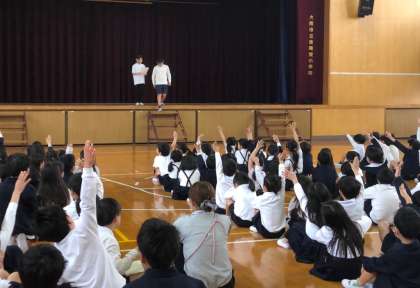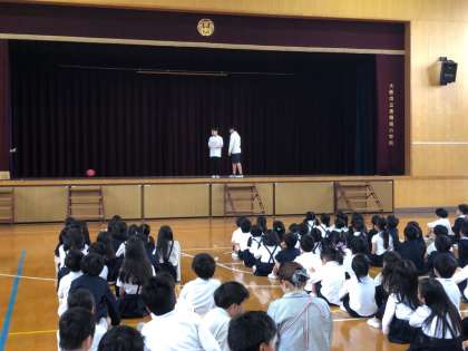 今日は今年度最初の児童集会でした。集会委員会の企画、進行による「何が通ったでしょうか?」です。