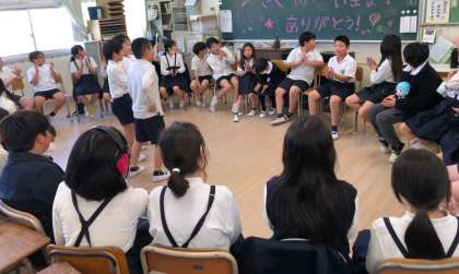 5年生の教室では、今日で転校してしまうお友だちを囲んで、ありがとうパーティをしていました。