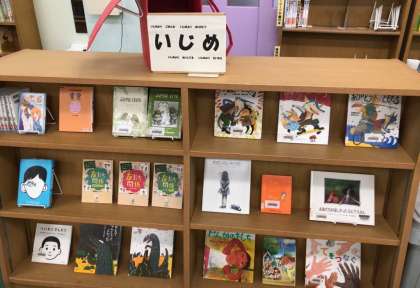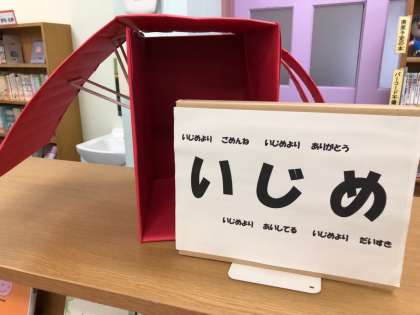 図書室では、今日の日にちなんで、いじめやいのち、なかまについての本を集めたコーナーが設置されています。