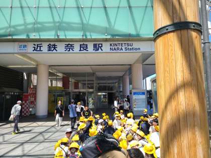 近鉄奈良駅につきました。観光客や遠足などでにぎわっています。これから奈良公園、東大寺に向かって歩きます。