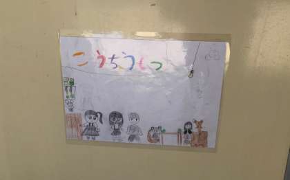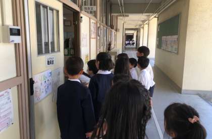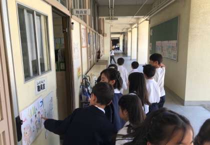 2年生が1年生を案内して、学校たんけんをしました。各部屋の絵を描いて、「ここは◯◯室です。〜〜をするところです。」と優しく説明していました。