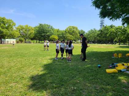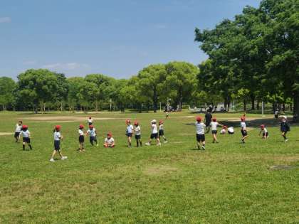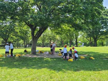 お弁当を食べて、おやつも食べて、広い芝生広場でそれぞれ遊んでいます!いっぱい走って楽しいね!