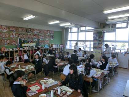 11月11日(水) ペア学年で給食の時間を共にしました。1年生と6年生、2年生と4年生、3年生と5年生。それぞれ仲良く、いつもの給食と違った感じで食べることができました。