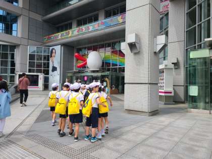 今日は1・2年生の遠足です。キッズプラザ大阪にきました。