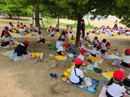 キッズプラザを出て、扇町公園でお昼ごはんです。