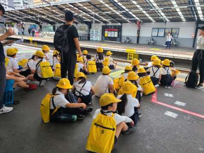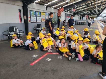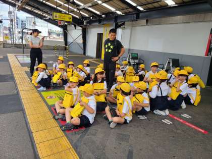3年生、社会見学です。あべのハルカスに行ってきます。今から電車に乗って天王寺まで行きます。