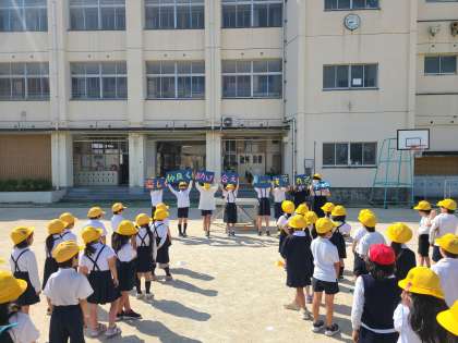 代表委員会から学校目標の発表がありました。「楽しく仲良く助け合え、ルールを守れる学校」にするために毎日を元気に過ごしましょう!