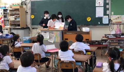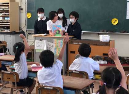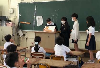 朝学習の時間に、図書委員会さんが低学年の教室に読み聞かせのプレゼントに来てくれました。