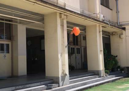午後から暑さ指数が「厳重警戒」となりました。オレンジの目印で、激しい運動をしない、水分補給、必ず着帽を呼びかけています。