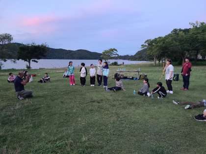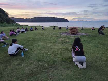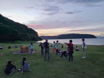 夕食も終わり、日が西にかたむきはじめました。キャンプファイヤーが始まります。
