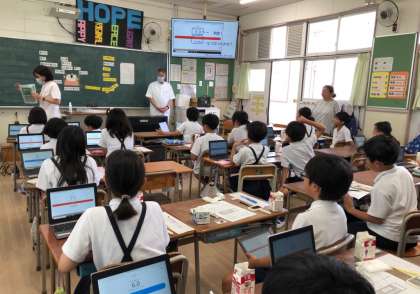 歯科校医先生と歯科衛生士さんに来ていただき、4年生がフッ化物洗口を実施しました。