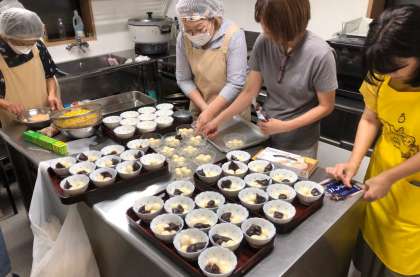 今日の宿題カフェでは、お月見にちなんだお団子づくりが行われていました。くるくる丸めて、あんこときな粉のお団子ができました。子どもたちは作るのも食べるのも大好きです。