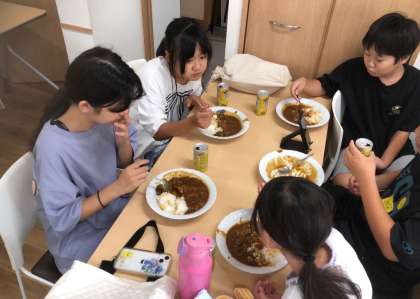 お昼ごはんは、宿題カフェ特製のカレーライスとはちみつレモン。デザートはもちろんお団子です。仲良く遊べるゲームもたくさん用意してくださっています。