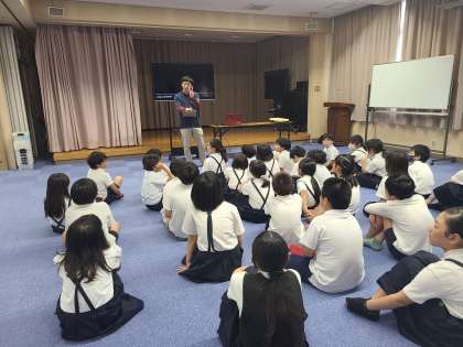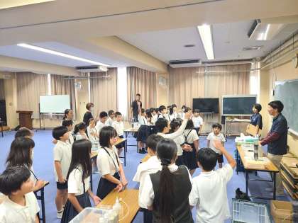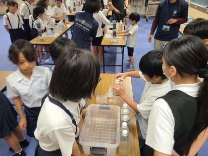 水道記念館の職員の方々が来られて、出前授業をしていただきました。DVD を視聴したり、水のろ過実験をしたり、利き水をしたり、とたくさんの活動がありました。2時間があっという間でした。みんな職員の方のお話をしっかり聞いて活動していました。学び多き時間になりましたね!